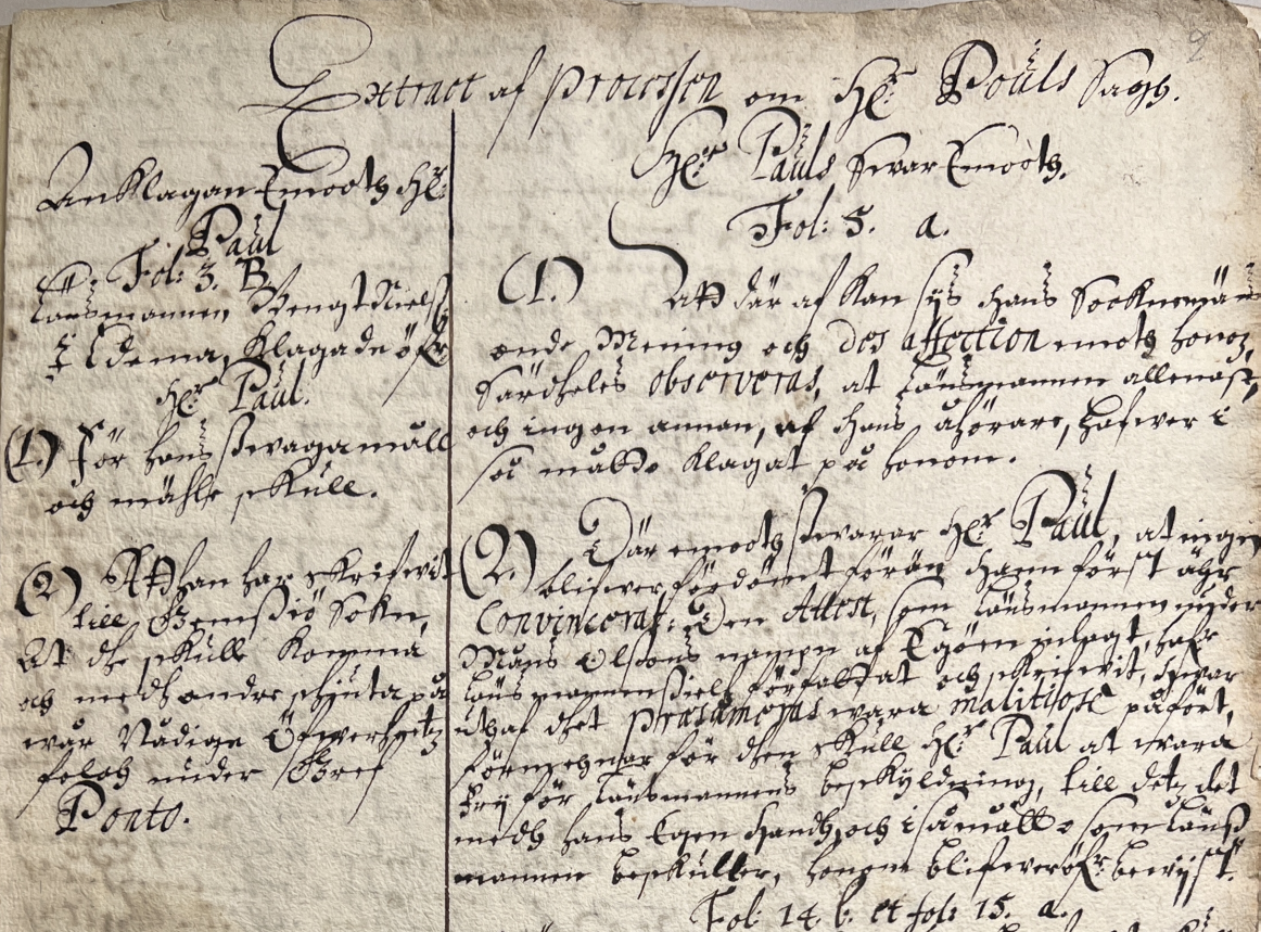 Del ur förhöret med Paul Enewaldsen 1681. Foto: Göran Mendys 2022