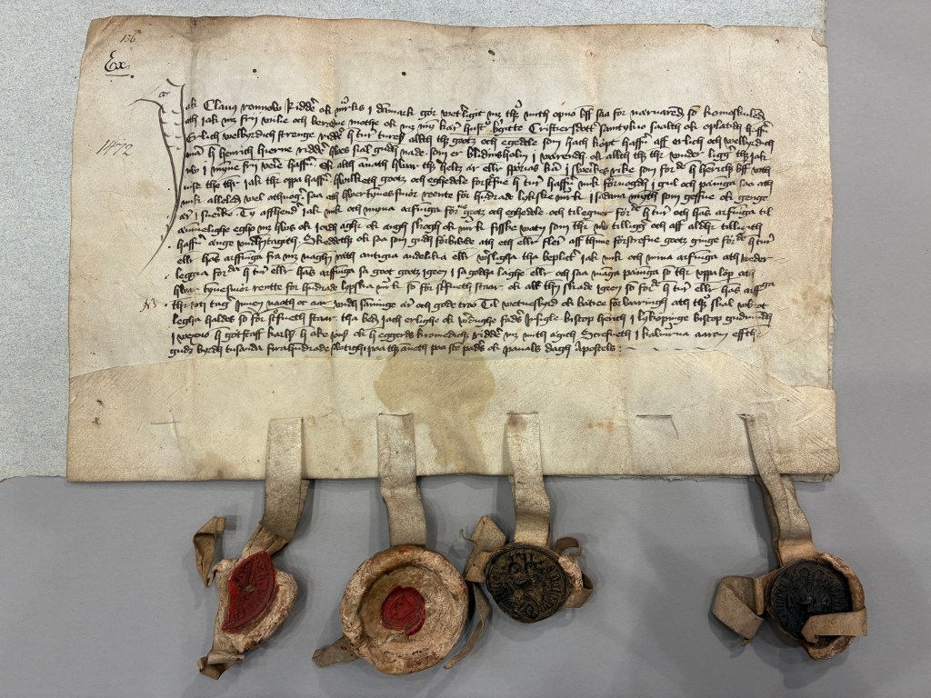 Detta pergament finns i Köpenhamn och min kollega Tony Olsson fotade det sist vi var där. Som man ser här under saknas det fjerde sigillet som var Åke Jönssons.