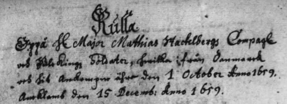 Mellan 1658-1681 fanns det soldater och ryttare. För Blekinge hade vi kavalleri som till stor del låg under norra skånska kavalleriregementet eller Lybeckers regemente (se exemplet om Caspar Due nedan under bilden). Dessa rullor finns digitala på Riksarkivet. Rubriken är rullor 1620-1723.