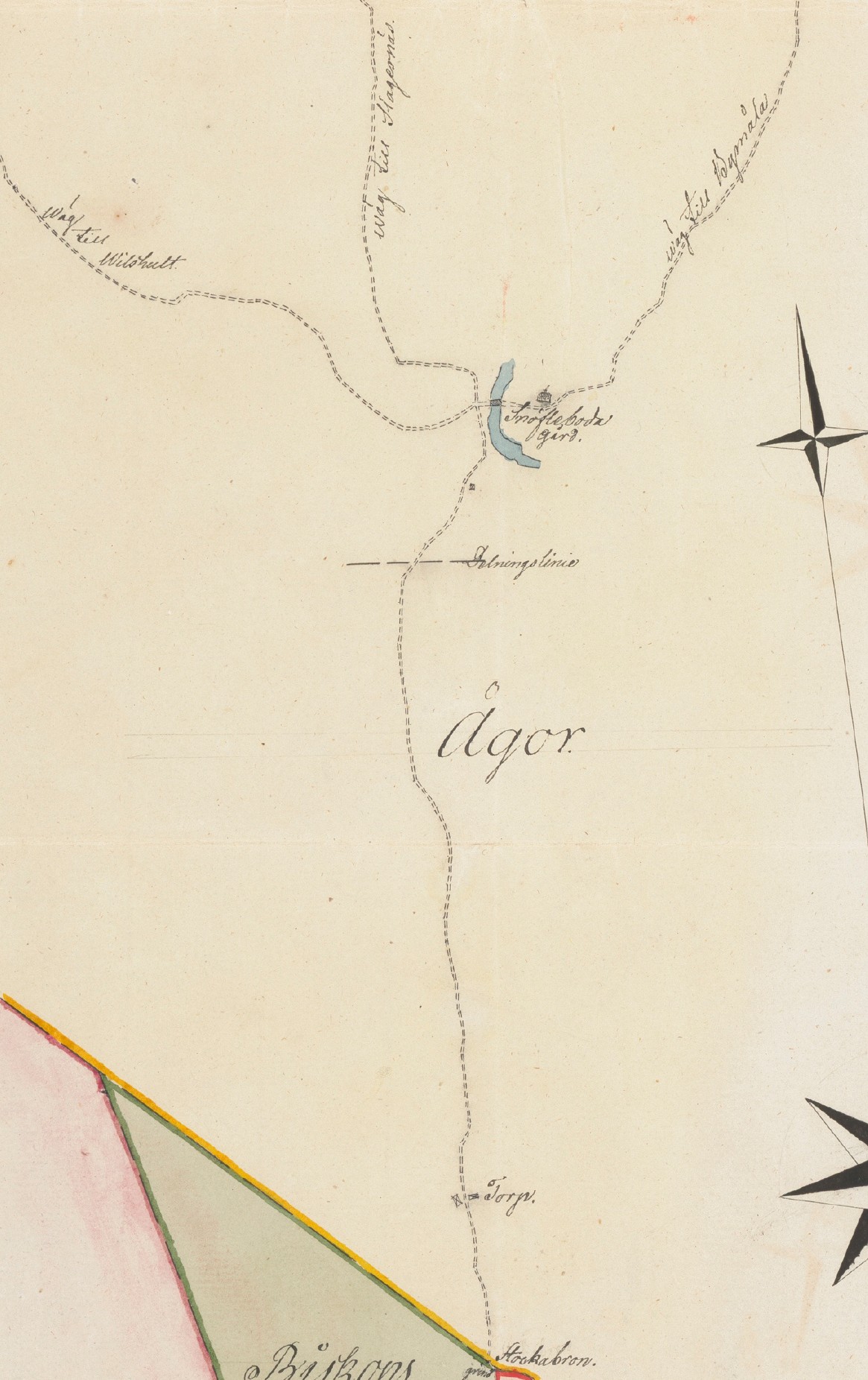 Ett är denna karta från 1822 som visar vägen från Holje by, bron över Holjeån på Nedre Brogatan, samt upp till Slagesnäs och Bymåla.